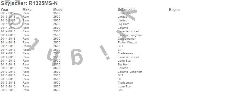 Skyjacker - Aluminum Spacer Leveling Kit w/Shocks P/N R1325MS-N Features: