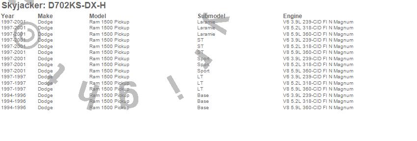 Skyjacker D702KS-DX-H Long Arm Suspension Lift Kit w/ Shocks 7 in. Lift - Incl. Coil Springs - Upper/Lower Links - Crossmember - Skid Plate - Track Bar Bracket - Track Bar - Leaf Springs - Hydro Shocks