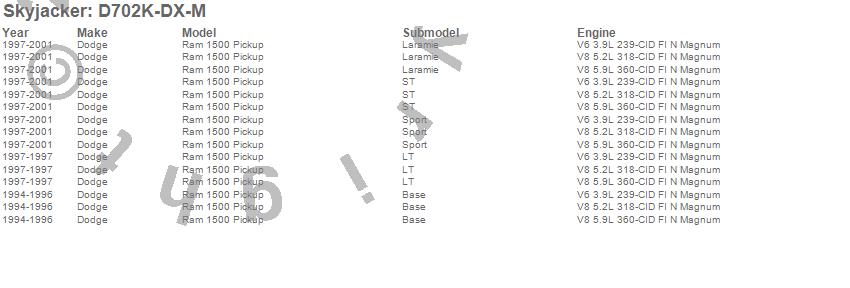Skyjacker D702K-DX-M Long Arm Suspension Lift Kit w/ Shocks 7 in. Lift - Incl. Coil Springs - Upper/Lower Links - Crossmember - Skid Plate - Track Bar Bracket - Track Bar - Add-A-Leaf - M95 Shocks