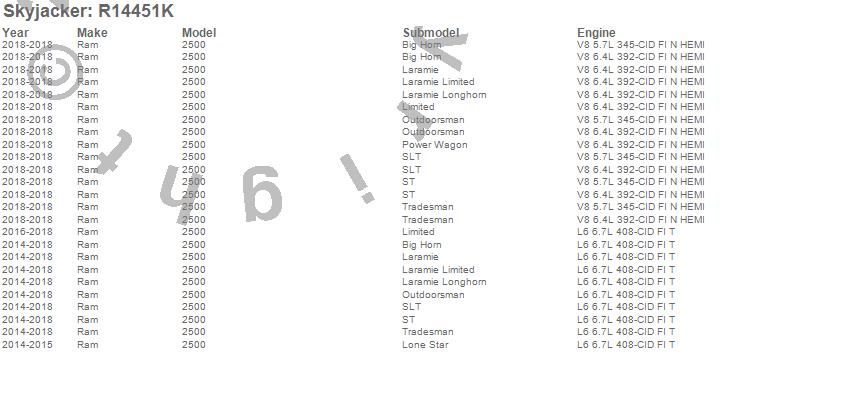 Skyjacker - Suspension Lift Kit P/N R14451K Features: