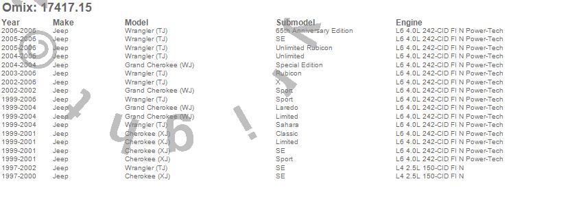 Cherokee (XJ), Grand Cherokee (WJ), Wrangler (LJ), Wrangler (TJ), Jeep, 2006, 2005, 2004, 2003, 2002, 2001, 2000, 1999, 1998, 1997