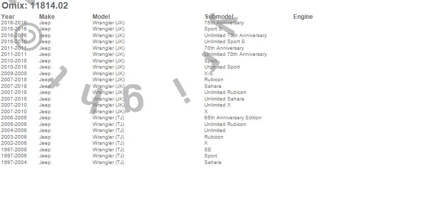 Wrangler (JK), Wrangler (LJ), Wrangler (TJ), Jeep, 2018, 2017, 2016, 2015, 2014, 2013, 2012, 2011, 2010, 2009, 2008, 2007, 2006, 2005, 2004, 2003