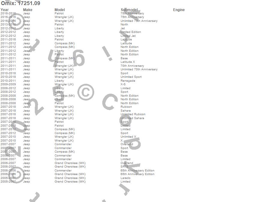Commander, Compass, Grand Cherokee (WK), Liberty, Patriot, Wrangler (JK), Jeep, 2018, 2017, 2016, 2015, 2014, 2013, 2012, 2011, 2010, 2009, 2008, 2007, 2006