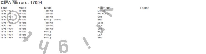Below is an abbreviated list of applications for the OE Replacement Mirror.