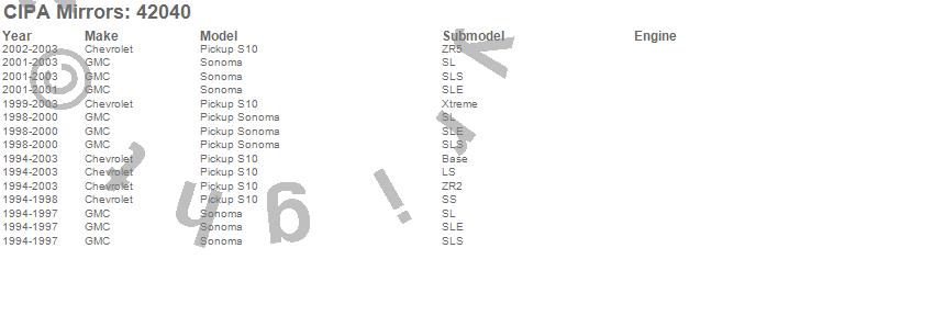 Below is an abbreviated list of applications for the OE Replacement Mirror.