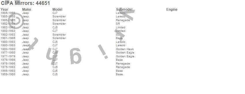 Below is an abbreviated list of applications for the OE Replacement Mirror.