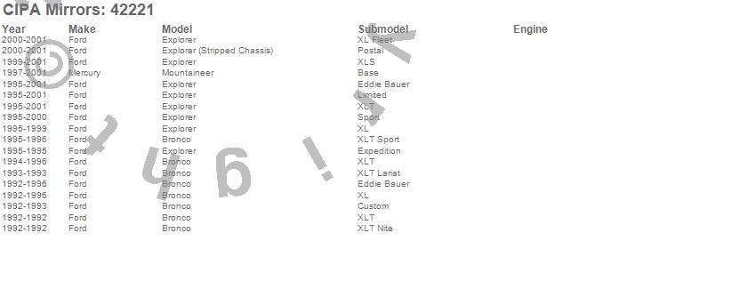 Below is an abbreviated list of applications for the OE Replacement Mirror.