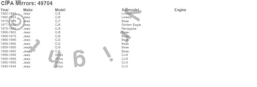 Below is an abbreviated list of applications for the OE Replacement Mirror.