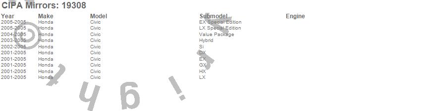 CIPA Mirrors - OE Replacement Mirror P/N 19308 Features: