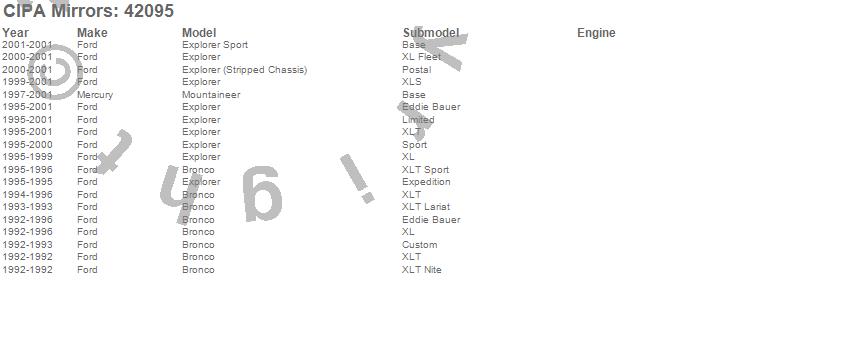 Below is an abbreviated list of applications for the OE Replacement Mirror.