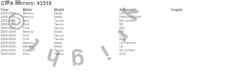 Below is an abbreviated list of applications for the OE Replacement Mirror.