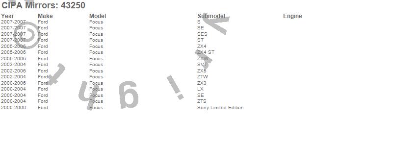 Below is an abbreviated list of applications for the OE Replacement Mirror.