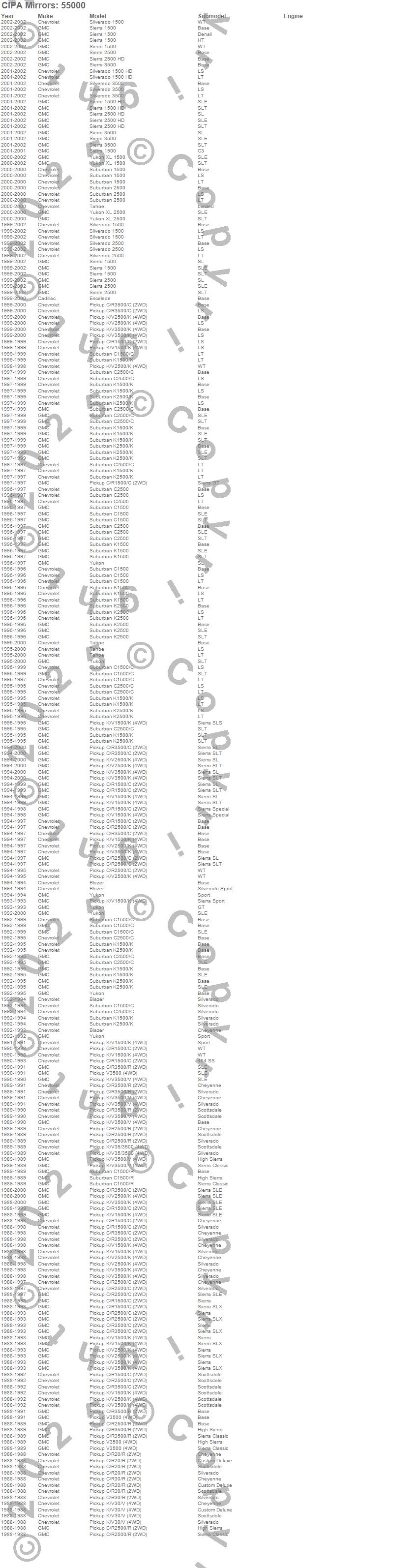Below is an abbreviated list of applications for the OE Replacement Mirror.