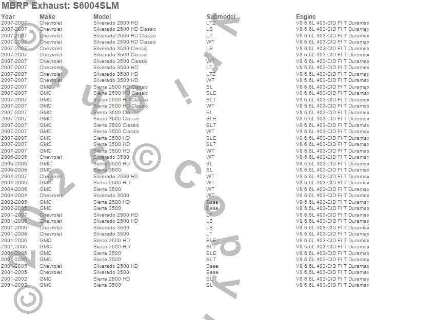Below is an abbreviated list of applications for the Armor Plus Cat Back Exhaust System.