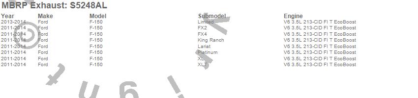 Below is an abbreviated list of applications for the Armor Lite Cat Back Exhaust System.