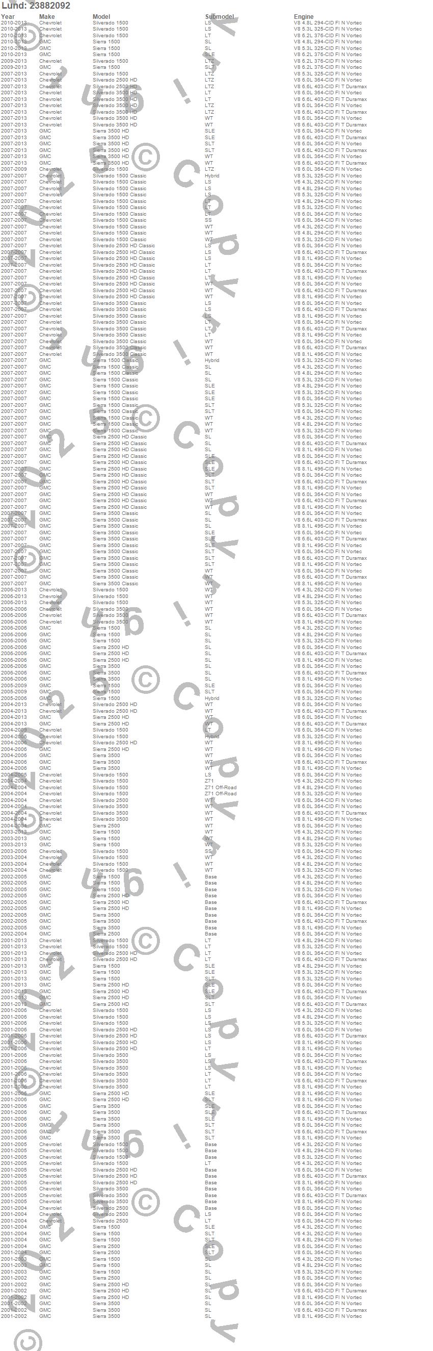 Sierra 1500, Sierra 1500 Classic, Sierra 2500, Sierra 2500 HD, Sierra 2500 HD Classic, Sierra 3500, Sierra 3500 Classic, Sierra 3500 HD, Silverado 1500, Silverado 1500 Classic, Silverado 2500, Silverado 2500 HD, Silverado 2500 HD Classic, Silverado 3500, Silverado 3500 Classic, Silverado 3500 HD, Chevrolet, GMC, 2013, 2012