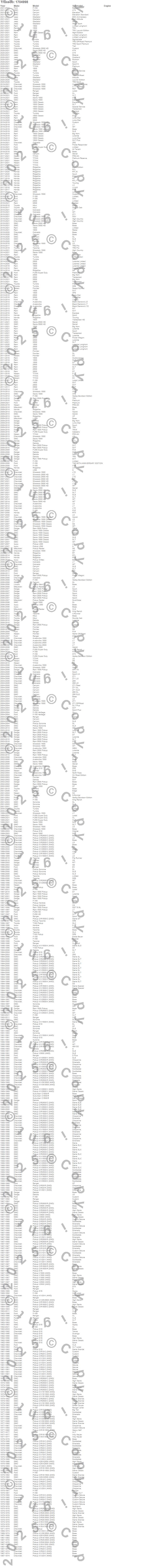1500, 1500 Classic, 2500, 3500, Avalanche, Avalanche 1500, Avalanche 2500, C10 Pickup, C1500 Pickup, C20 Pickup, C25/C2500 Pickup, C2500 Pickup, C30 Pickup, C35/C3500 Pickup, C3500 Pickup, Canyon, Colorado, Dakota, F-150, F-150 Heritage