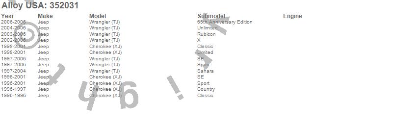 Cherokee (XJ), Wrangler (TJ), Jeep, 2006, 2005, 2004, 2003, 2002, 2001, 2000, 1999, 1998, 1997, 1996