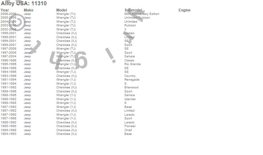 Cherokee (XJ), Wrangler (TJ), Wrangler (YJ), Jeep, 2006, 2005, 2004, 2003, 2002, 2001, 2000, 1999, 1998, 1997, 1996, 1995, 1994, 1993, 1992, 1991