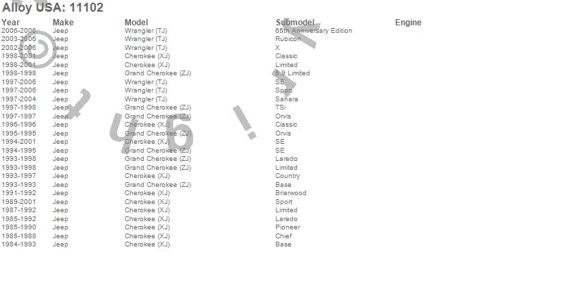 Cherokee (XJ), Grand Cherokee (ZJ), Wrangler (TJ), Jeep, 2006, 2005, 2004, 2003, 2002, 2001, 2000, 1999, 1998, 1997, 1996, 1995, 1994, 1993, 1992, 1991
