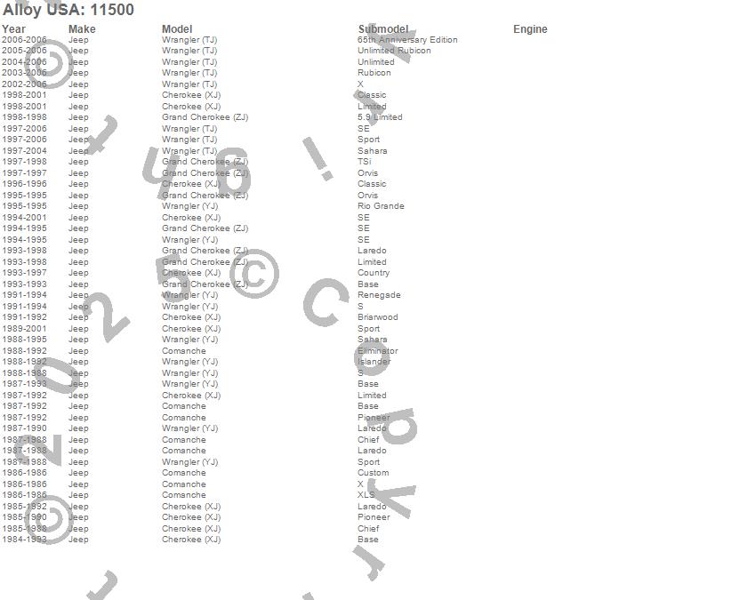 Cherokee (XJ), Comanche, Grand Cherokee (ZJ), Wrangler (TJ), Wrangler (YJ), Jeep, 2006, 2005, 2004, 2003, 2002, 2001, 2000, 1999, 1998, 1997, 1996, 1995, 1994, 1993