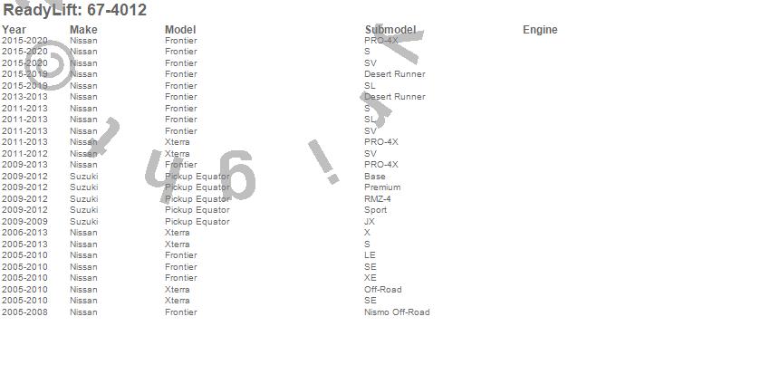 Equator, Frontier, Xterra, Nissan, Suzuki, 2020, 2019, 2018, 2017, 2016, 2015, 2013, 2012, 2011, 2010, 2009, 2008, 2007, 2006, 2005