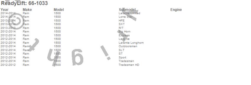 ReadyLift - Front Leveling Kit P/N 66-1033 Features: