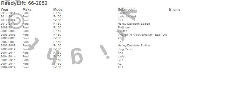 Below is an abbreviated list of applications for the Front Leveling Kit.