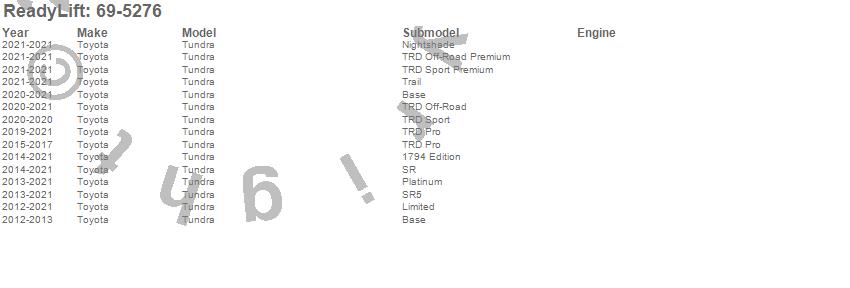 Below is an abbreviated list of applications for the SST Lift Kit.
