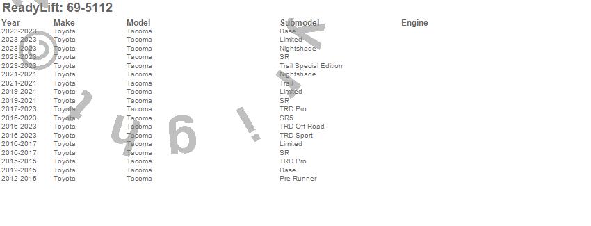 ReadyLift - SST Lift Kit P/N 69-5112 Features: