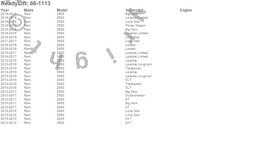 ReadyLift - Front Leveling Kit P/N 66-1113 Features: