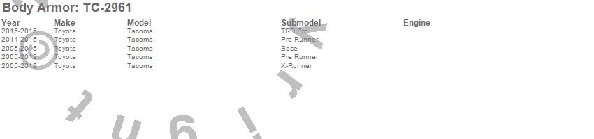 Body Armor - Rear Bumper P/N TC-2961 Features: