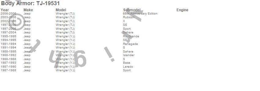 Wrangler (TJ), Wrangler (YJ), Jeep, 2006, 2005, 2004, 2003, 2002, 2001, 2000, 1999, 1998, 1997, 1995, 1994, 1993, 1992, 1991, 1990, 1989