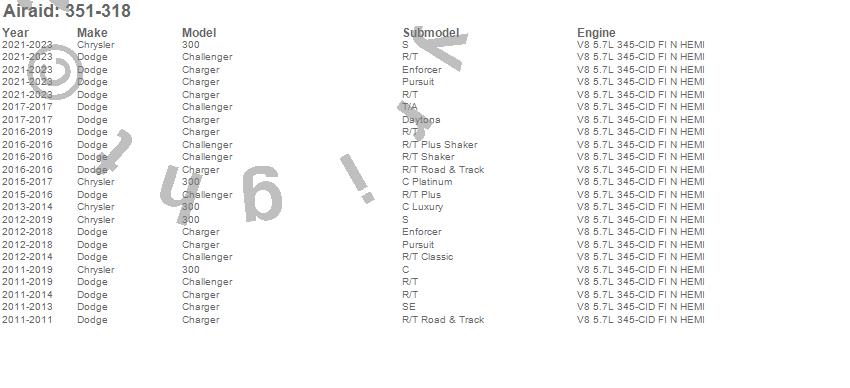 Below is an abbreviated list of applications for the AIRAID Cold Air Dam Air Intake System.