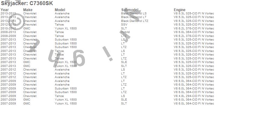 Avalanche, Suburban 1500, Tahoe, Yukon XL 1500, Chevrolet, GMC, 2013, 2012, 2011, 2010, 2009, 2008, 2007