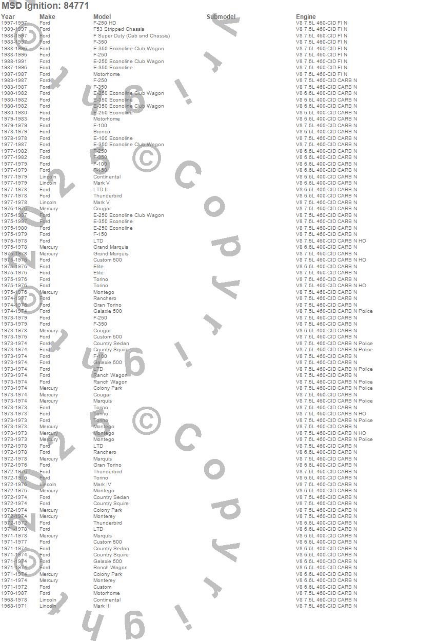 Bronco, Colony Park, Continental, Cougar, Country Sedan, Country Squire, Custom, Custom 500, E-100 Econoline, E-250 Econoline, E-250 Econoline Club Wagon, E-350 Econoline, E-350 Econoline Club Wagon, Elite, F Super Duty, F-100, F-150, F-250, F-250 HD, F-350