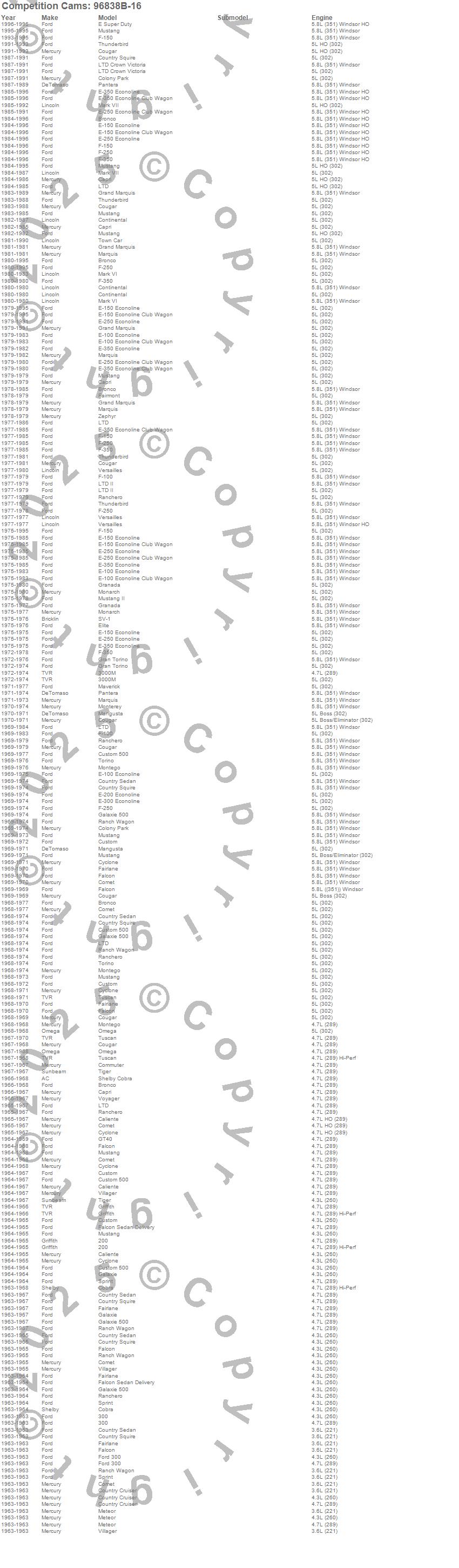 Competition Cams - Sportsman Solid Roller Lifter P/N 96838B-16 Features: