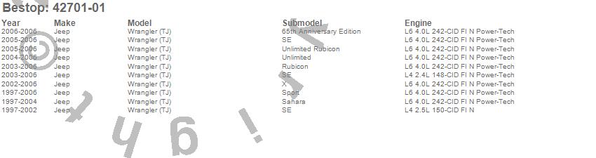 Wrangler (TJ), Jeep, 2006, 2005, 2004, 2003, 2002, 2001, 2000, 1999, 1998, 1997