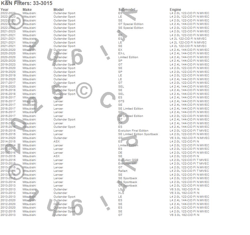 ASX, Lancer, Outlander, Outlander Sport, Mitsubishi, 2023, 2022, 2021, 2020, 2019, 2018, 2017, 2016, 2015, 2014, 2013, 2012