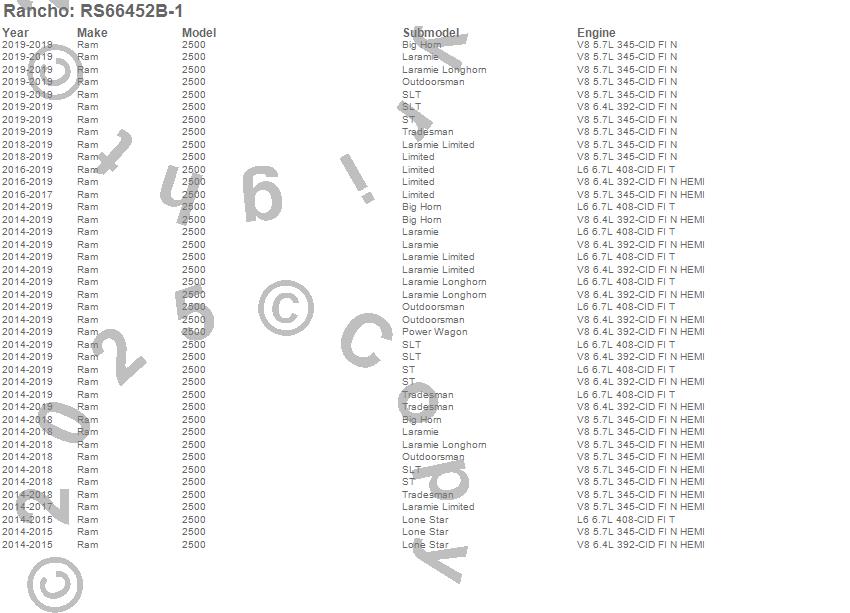 Rancho - Coil Spring Set P/N RS66452B-1 Features: