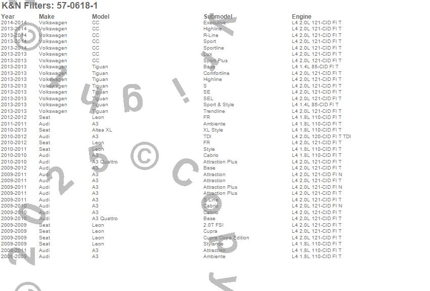 A3, A3 Quattro, Altea XL, CC, Leon, Tiguan, Audi, Seat, Volkswagen, 2014, 2013, 2012, 2011, 2010, 2009, 2008