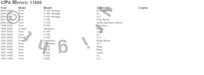Below is an abbreviated list of applications for the Custom Towing Mirror Set.