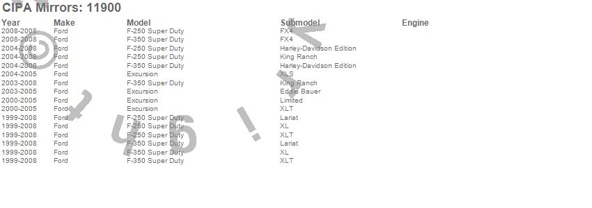 Below is an abbreviated list of applications for the Custom Towing Mirror Set.