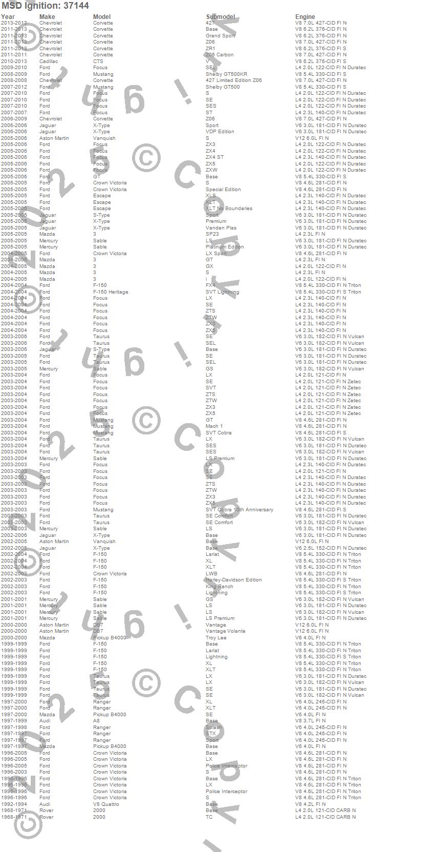 2000, 3, A8, B4000, Corvette, Crown Victoria, CTS, DB7, Escape, F-150, F-150 Heritage, Focus, GT, Mustang, Ranger, S-Type, Sable, Taurus, V8 Quattro, Vanquish