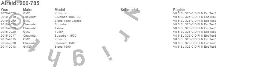 Below is an abbreviated list of applications for the AIRAID Jr. Air Intake Tube Kit.