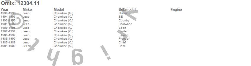 Cherokee (XJ), Jeep, 1996, 1995, 1994, 1993, 1992, 1991, 1990, 1989, 1988, 1987, 1986, 1985, 1984