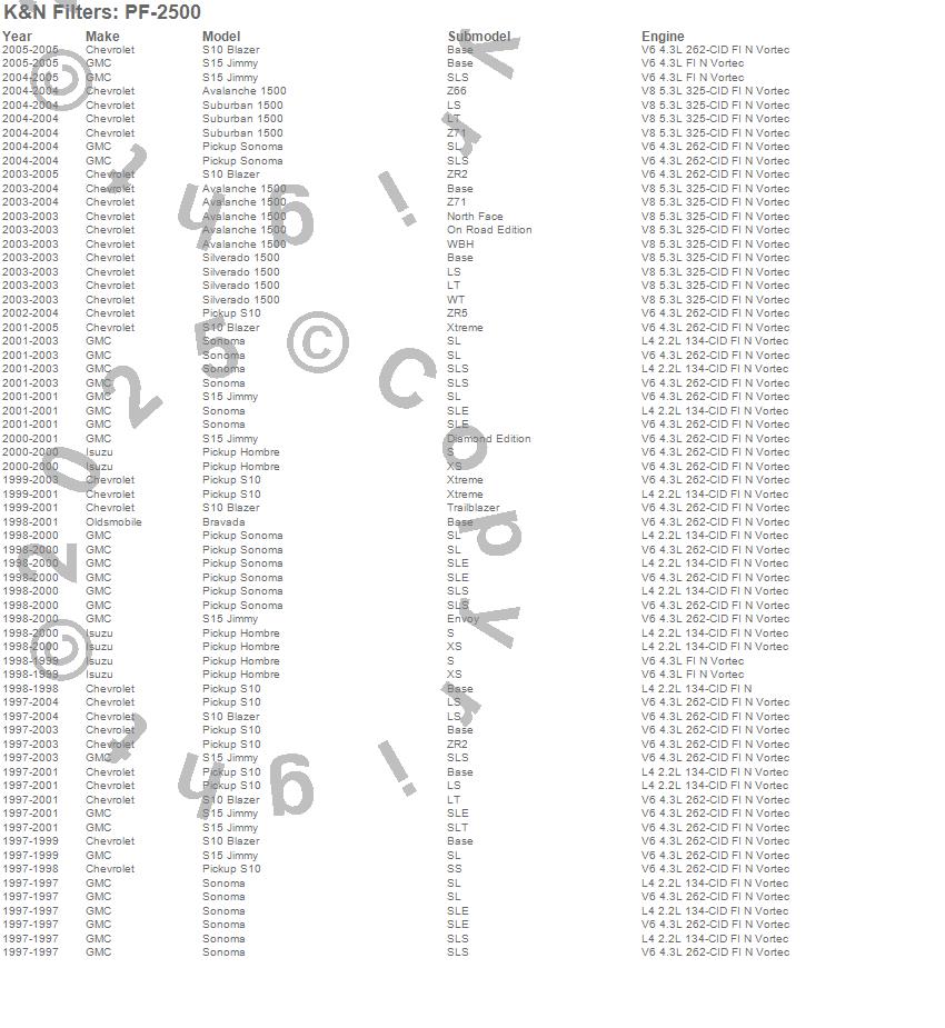 Avalanche 1500, Bravada, Hombre, S10 Blazer, S10 Pickup, S15 Jimmy, Silverado 1500, Sonoma, Suburban 1500, Chevrolet, GMC, Isuzu, Oldsmobile, 2005, 2004, 2003, 2002, 2001, 2000, 1999