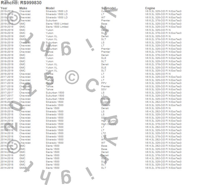 Below is an abbreviated list of applications for the RS9000XL Series Suspension Strut Assembly.
