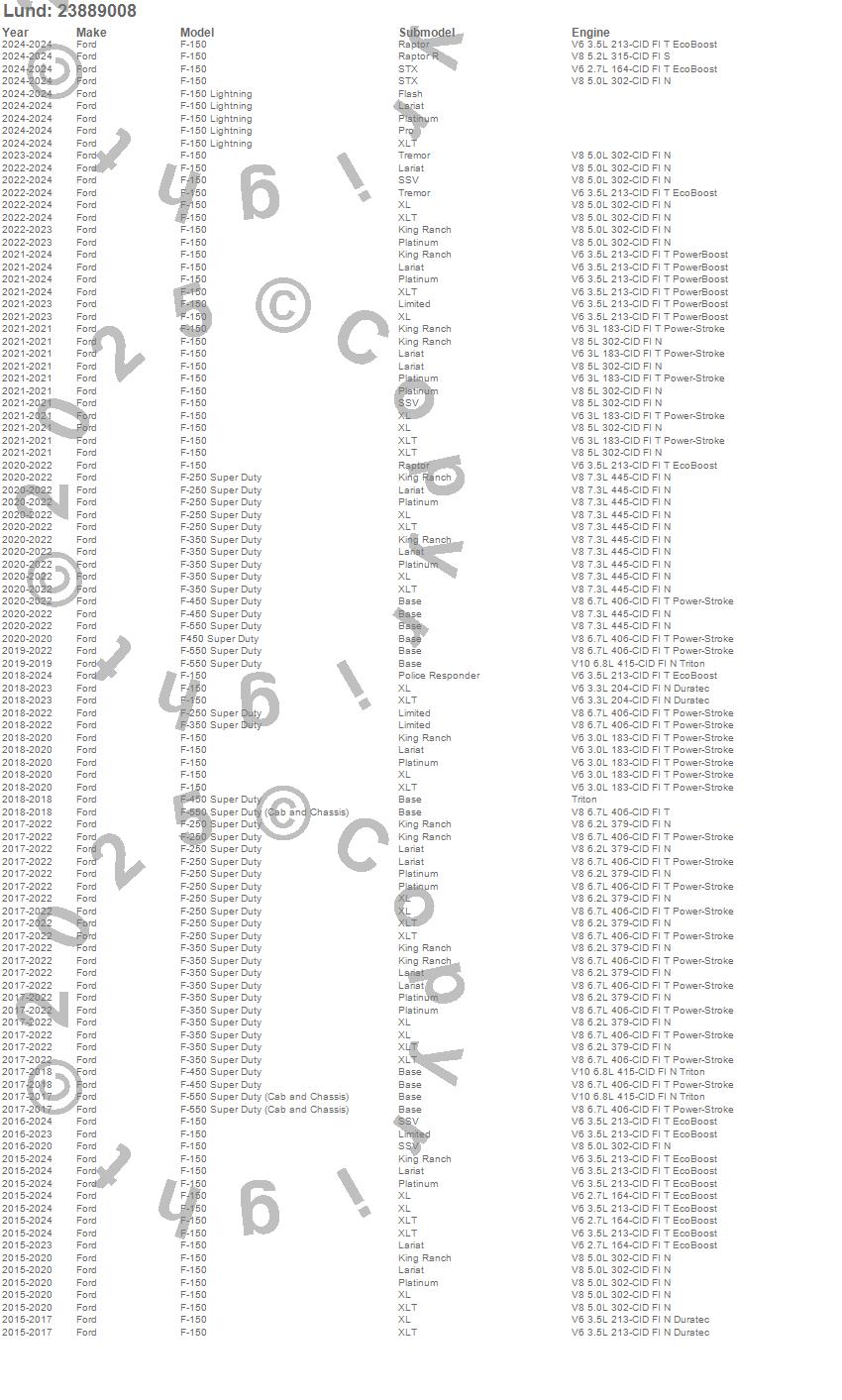 F-150, F-150 Lightning, F-250 Super Duty, F-350 Super Duty, F-450 Super Duty, F-550 Super Duty, F450 Super Duty, Ford, 2025, 2024, 2023, 2022, 2021, 2020, 2019, 2018, 2017, 2016, 2015