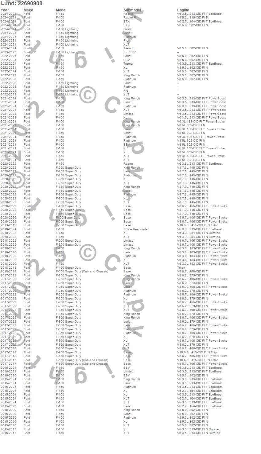 F-150, F-150 Lightning, F-250 Super Duty, F-350 Super Duty, F-450 Super Duty, F-550 Super Duty, F450 Super Duty, Ford, 2026, 2025, 2024, 2023, 2022, 2021, 2020, 2019, 2018, 2017, 2016, 2015